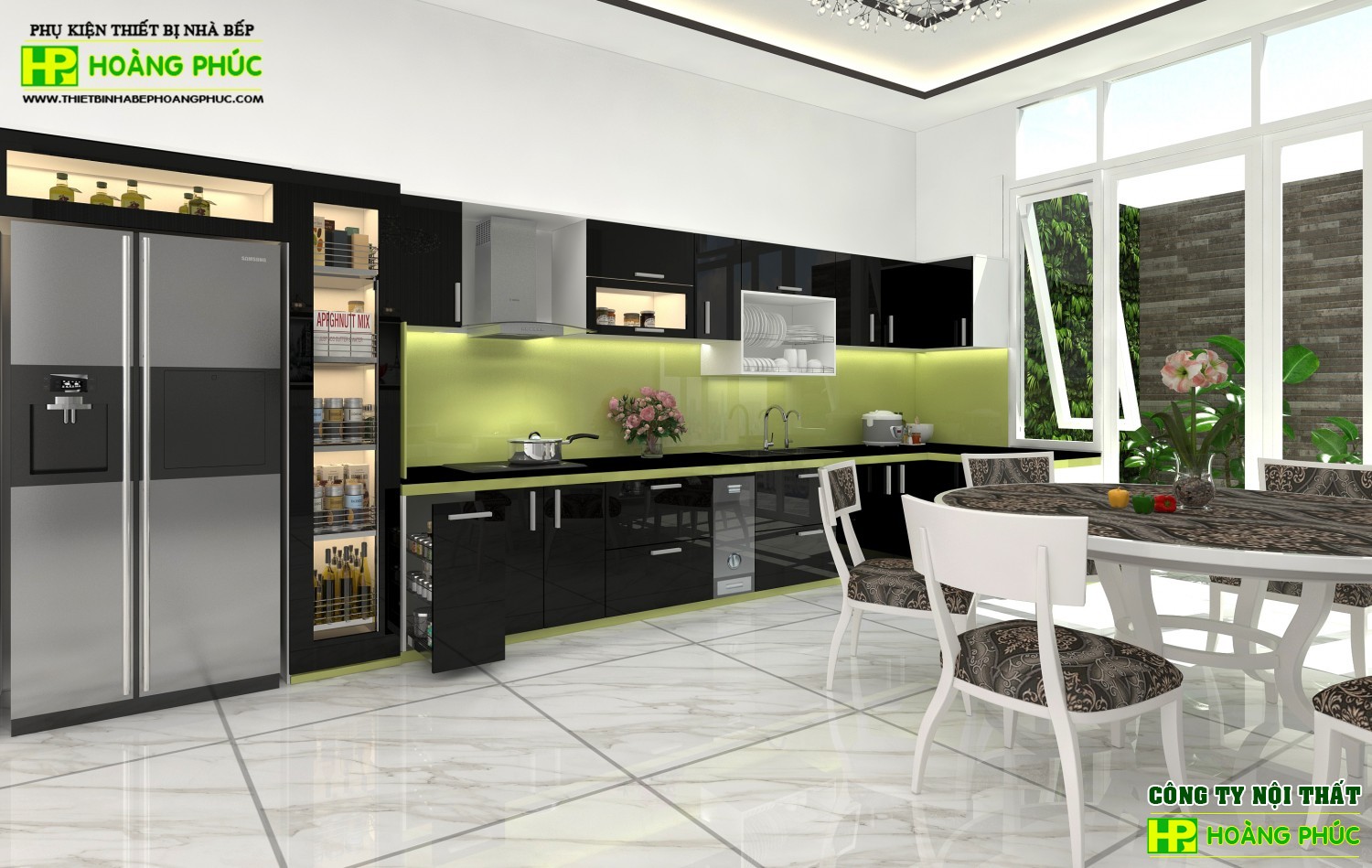 – Phụ kiện chức năng: Thùng gạo thông minh, máy lọc nước, kệ gia vị, giá bát đĩa cố định, giá xoong nồi inox, tủ khô.